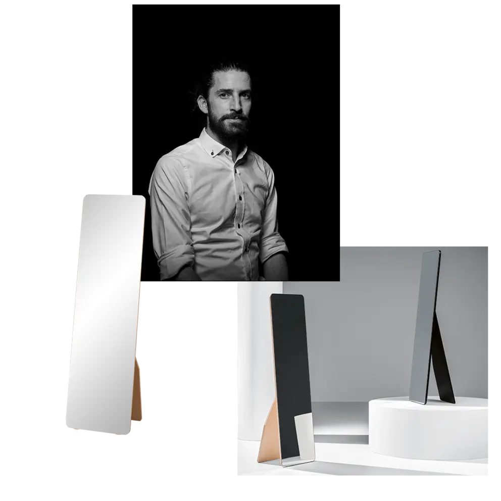 Die Idee für den Holz-Standspiegel DIZY hatte Industriedesigner Adrien Rovero im Jahr 2011. Das Design basiert auf dem klassischen Fotorahmen, den man auf Möbel stellt. DIZY übernimmt das Prinzip dieser relativ einfach konzipierten Rahmen und setzt es in den Massstab eines grossen Spiegels, der frei im Raum steht. Für die neue Atelier Pfister Kollektion wurde der Spiegel mit Furnier und Lack in Schwarz gefertigt.