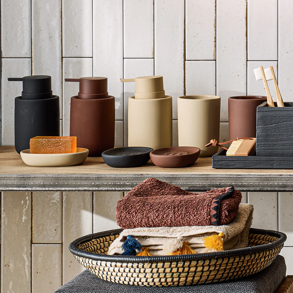Hier duschen wir, putzen uns die Zähne und machen uns schön. Mit ausgesuchten Accessoires aus Materialien wie Steingut und Marmor verleihen wir selbst profanen Handlungen wie dem Händewaschen und der Zahnhygiene einen Hauch von Noblesse. Seien es Becher und Dosen oder Seifenspender und Seifenschalen, bei pfister findest du praktisches und stilvolles Badzubehör.