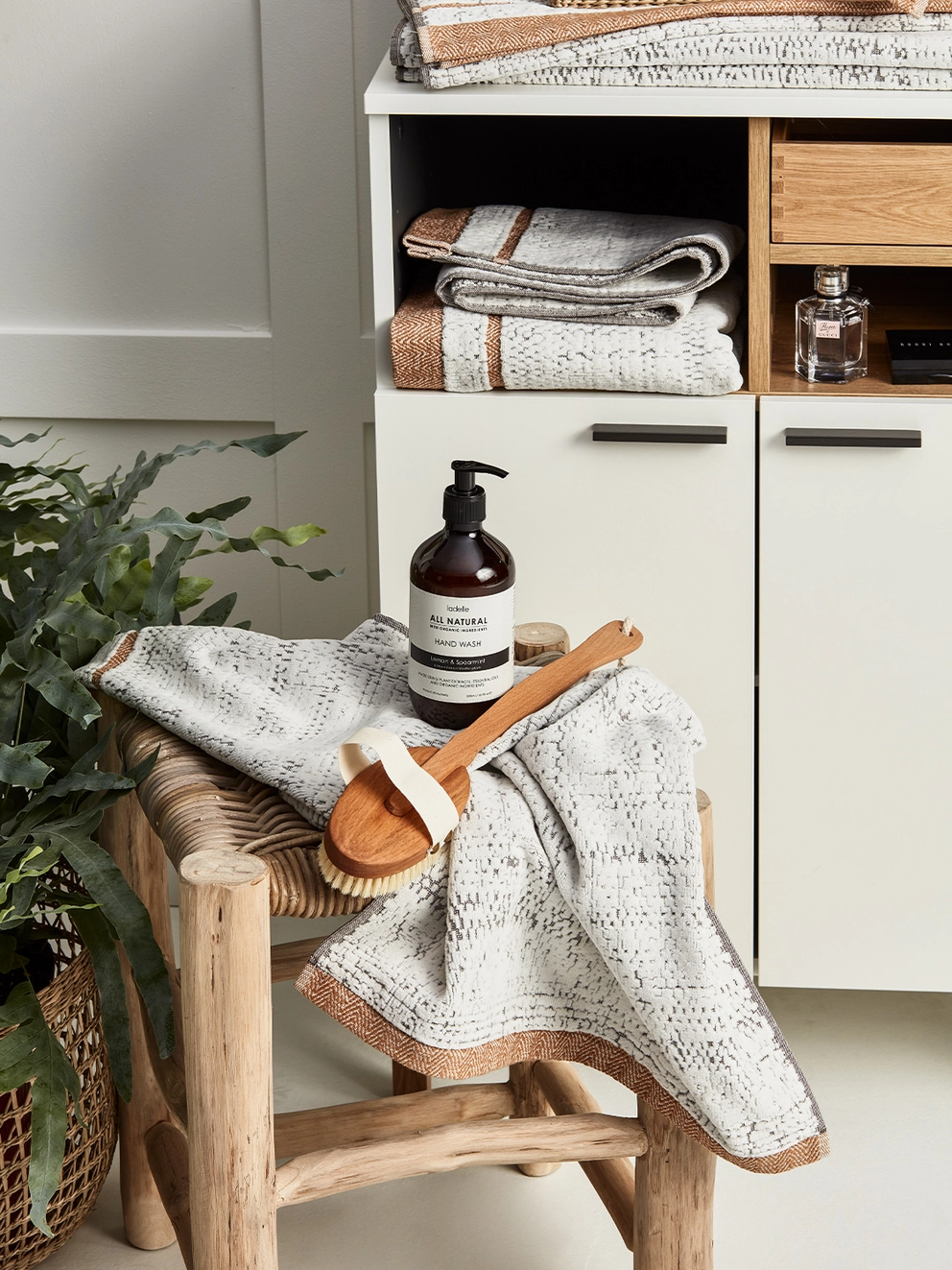 - Jetzt kommt das Highlight: Mamas Hauptgeschenk. Wie wäre es mit einem kuscheligen Bademantel? Platziere ihn in der Mitte des Korbs.