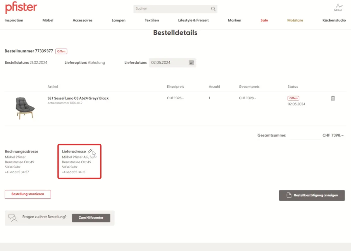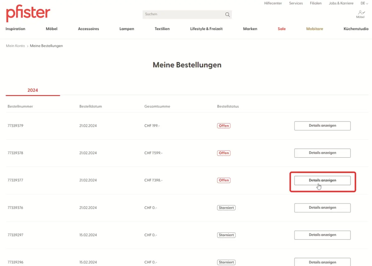 - Kann ich meine Bestellung in einer pfister Filiale abholen?