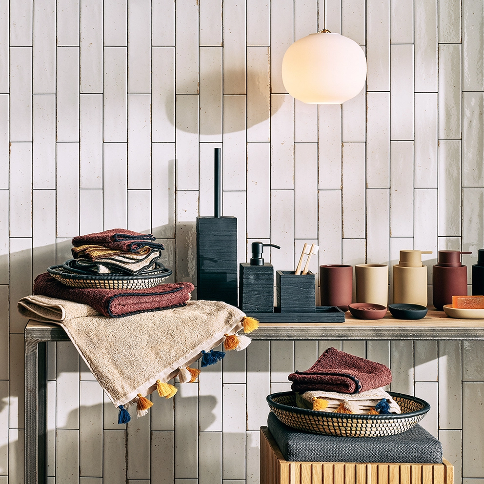 Was in deinem Alltag auf keinen Fall fehlen darf? Zeit für dich. Schaffe dir mit wenigen Handgriffen eine kleine Wellness-Welt in deinem Bad – mit natürlichen Materialien, weichen Texturen und sinnlichen Düften. Frottierwäsche in Beige- und Brauntönen unterstreicht den wohligen Charakter deiner Raumgestaltung. Für ein noch entspannteres Badeerlebnis sorgt zum Beispiel ein Badekissen als gemütliche Kopfstütze. Kerzen tauchen deinen persönlichen Wellness-Tempel in ein sanftes Licht.