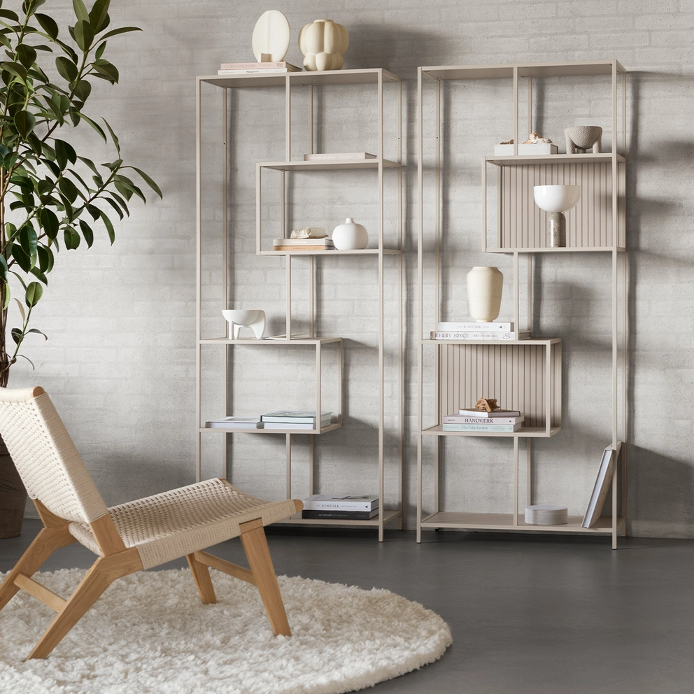 - helle Regale, die auch als Raumteiler einsetzbar sind.