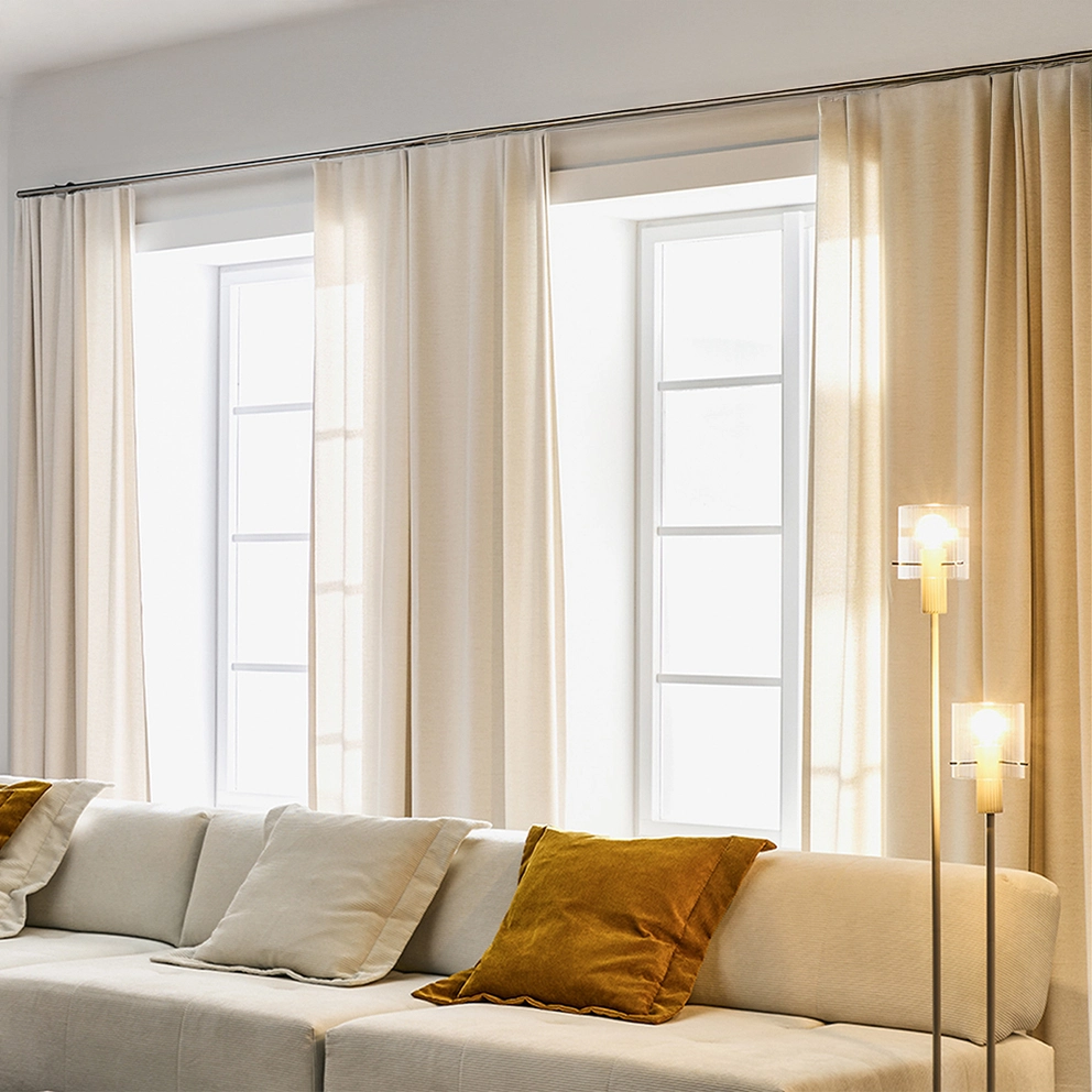 Hänge Vorhänge in kleinen oder niedrigen Räumen so hoch wie möglich, am besten direkt unter die Decke. Das lässt den Raum höher und grosszügiger wirken. Wähle leichte Stoffe, damit natürliches Licht den Raum durchflutet. Tipp: Vorhänge können auch als Raumteiler dienen, besonders in 1-Zimmer-Wohnungen. So schaffst du flexible Bereiche für mehr Privatsphäre und Struktur.