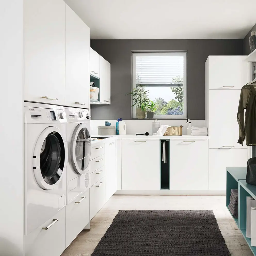 Celina kann nicht nur Küchen. Auch die Planung individueller Hauswirtschaftsräume – auf Wunsch natürlich auch passend zur Küche – gehört zu den Spezialitäten des Familienunternehmens. Dabei sind praktische Details Trumpf: platzsparende Wäschetrockner zum Ausklappen, erhöht eingebaute Geräte, Unterschränke mit Wäschekorb-Tablaren und entnehmbaren Körben, clevere Ordnungs¬systeme mit Wertstoff-Depot, diversen Halterungen und Behältern, Unterschränke mit Ausziehtisch für zusätzliche Ablagefläche ... Lassen Sie sich Ihren Stauraum doch einfach massschneidern!