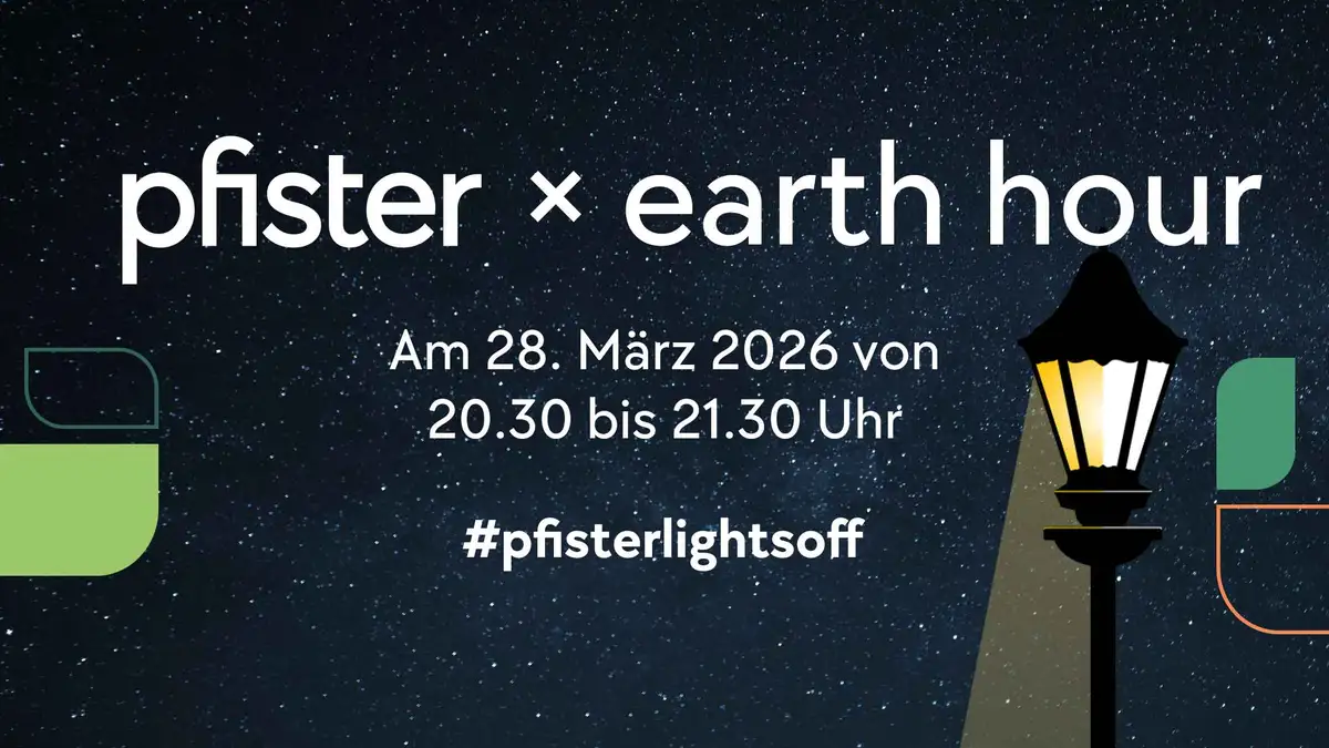 pfister nimmt an der Earth Hour des WWF teil und setzt damit ein Zeichen für mehr Klimaschutz, aber auch für den Frieden: Am 28. März 2026 schalten wir an allen Standorten während einer Stunde von 20.30 bis 21.30 Uhr die komplette Innen- und Aussenbeleuchtung ab. Mach auch du mit mit bei der grössten globalen Klima- und Umweltschutzaktion. Ob als Privatperson, Stadt oder Unternehmen, die Teilnahme an der Earth Hour ist für alle möglich.