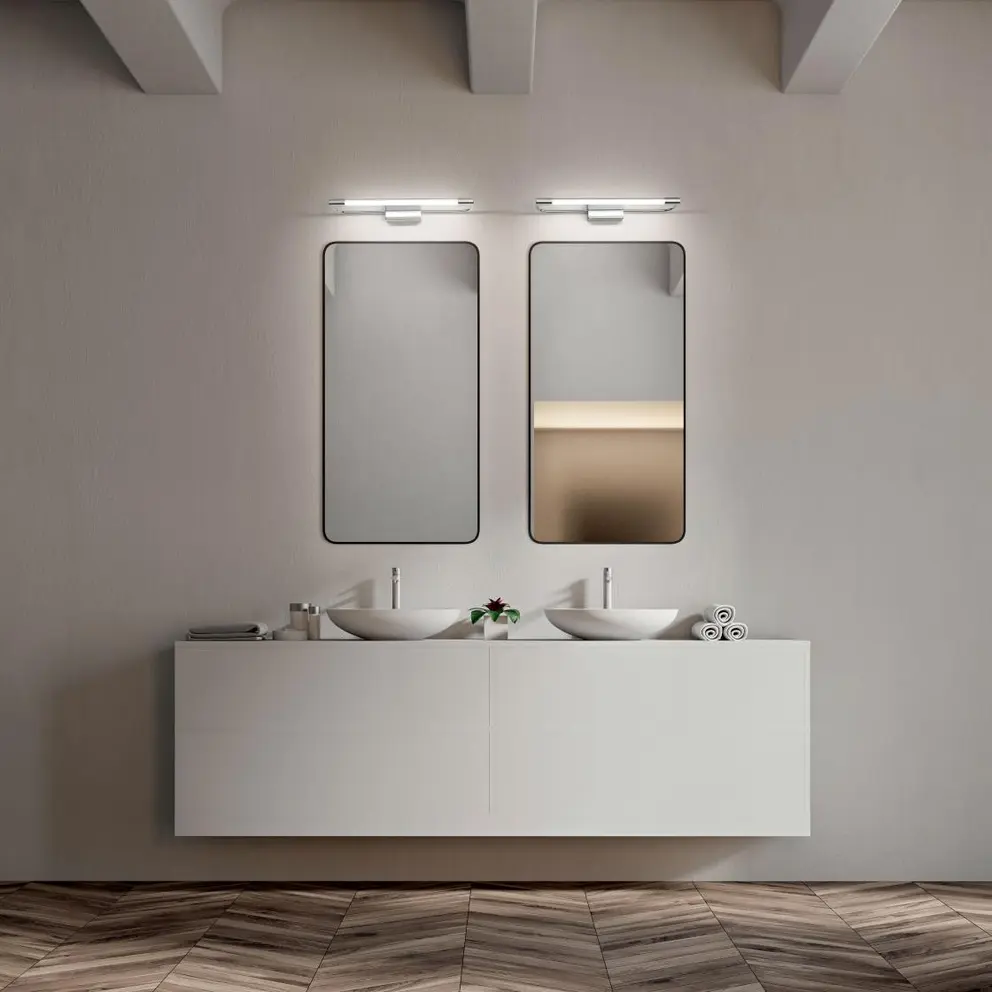 - Spiegellampen: Damit du bei deiner Morgenhygiene vor dem Spiegel alles gut im Blick hast, bietet sich eine schmale, breite Badezimmerlampe über dem Spiegel an.