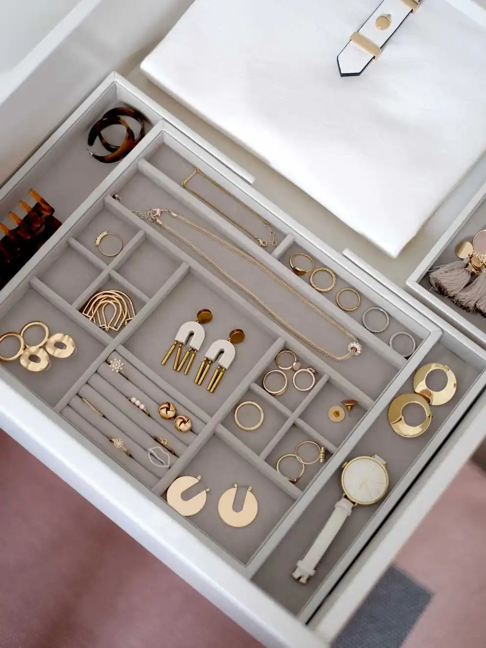- Wer gerne verschiedenste Schmuckstücke wie Ringe, Armbänder und Uhren trägt, greift am besten zu einer Schmuckbox, die gross ist. In einem Schmuckkasten mit Schubladen und Fächern kannst du deine gesamte Kollektion unterbringen und dein eigenes Ordnungssystem etablieren.