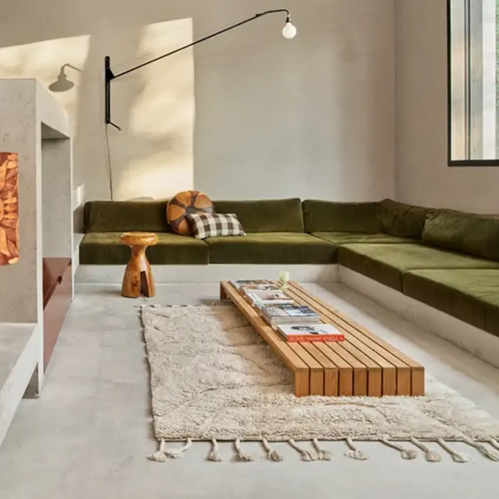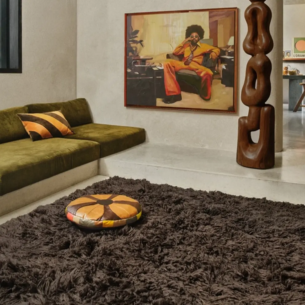 - Hochflorteppiche, die rund sind, bereichern den Raum mit einer spielerischen Note, während grosse rechteckige Teppiche ein luxuriöses, grosszügiges Ambiente schaffen.