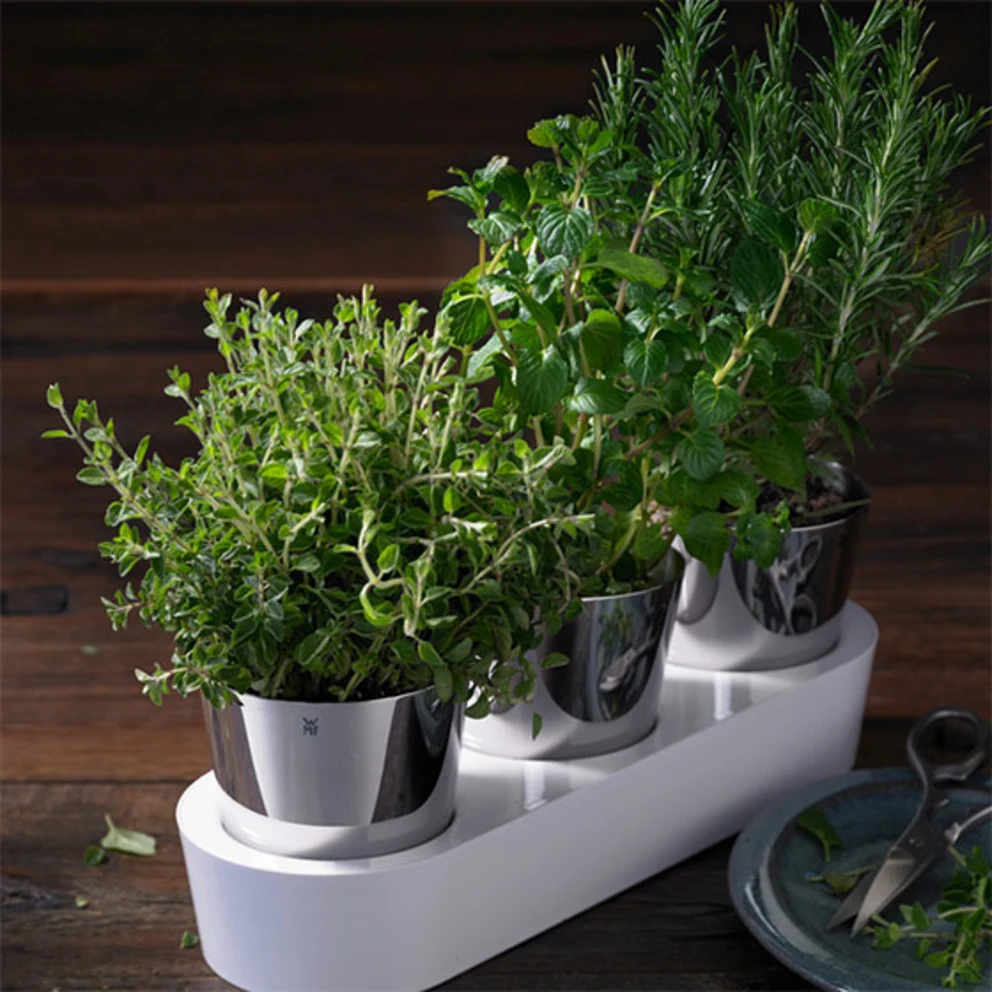 • Manche Blumentöpfe bringen ein eigenes Bewässerungssystem oder einen Wassertank mit. Über einen Regler wird der Wasserstand im Topf angezeigt. Dadurch weisst du genau, wann es wieder Zeit zum Giessen wird. Oder der integrierte Tank sorgt dafür, dass das Wasser kontinuierlich an die Pflanze abgegeben wird – was etwa bei Kräutern sinnvoll ist.