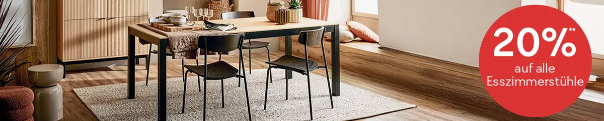 ** 20% auf alle Esszimmerstühle, Schlafzimmerschränke, Töpfe und Pfannen, Bürostühle, Bettwäsche von Edition sowie Tischleuchten für mypfister Member und Neumember. Gültig vom 7. bis 20.4.2026. Nicht kumulierbar mit anderen Vergünstigungen, nicht gültig für die Marken Arteminde, HAY, elements by Bankamp, MAB, one, TEAM 7 und WILLISAU und den Stuhl WILA NFT Limited Edition 220.873.5 sowie für Online-Only-Artikel, Mobitare, Services, Geschenkgutscheine und bereits erteilte Aufträge. Inkl. 2% mypfister Member Bonus.