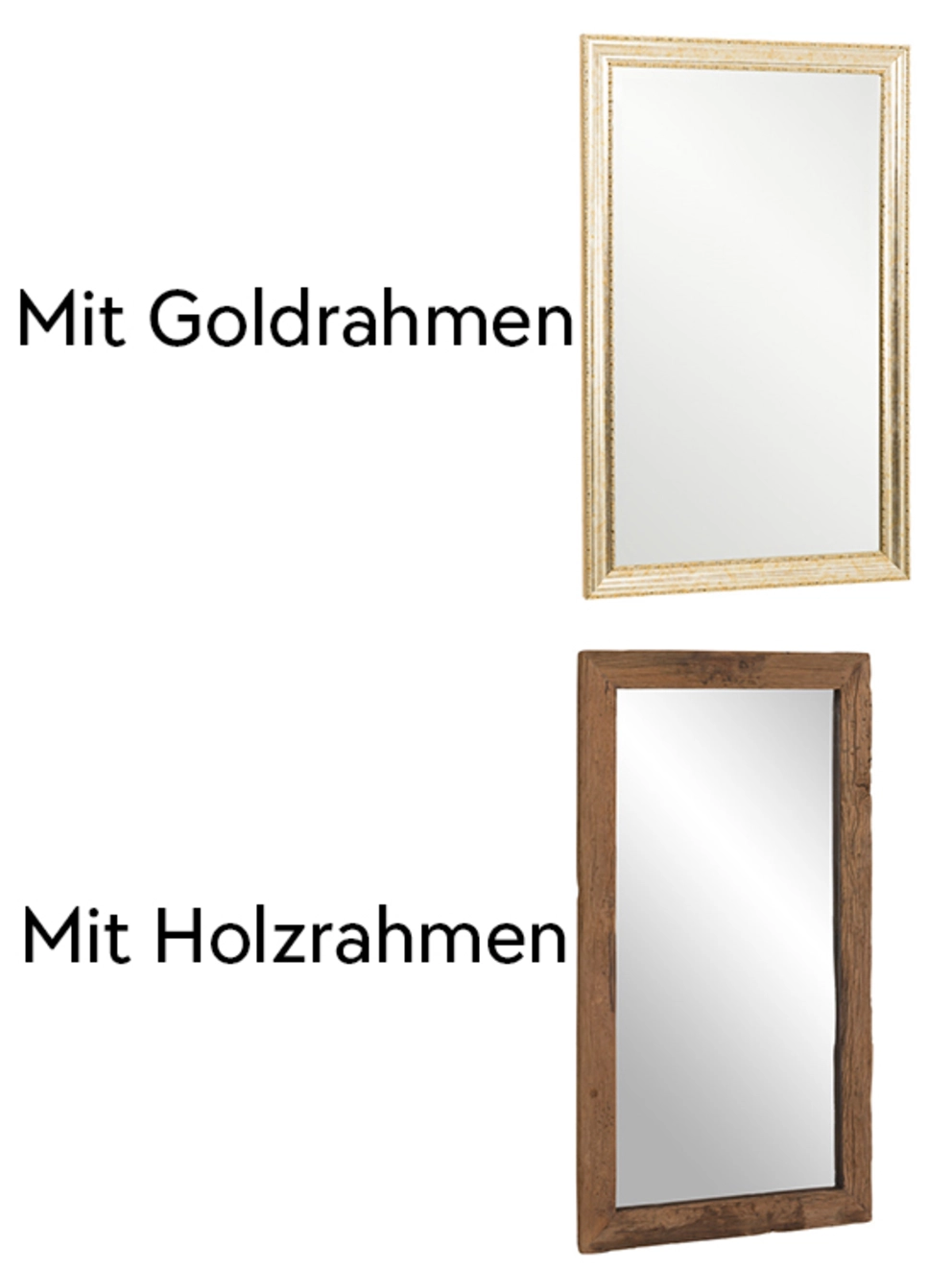 Holzspiegel: Holzspiegel, also Spiegel mit Holzrahmen gibt es in alle Größen und Versionen. Als mannshohe Standspiegel wirst du zum vollwertigen Möbelstück, als Wandspiegel in Entrée, Schlaf- oder Wohnzimmer wirken Holzrahmen wohnlich und warm.