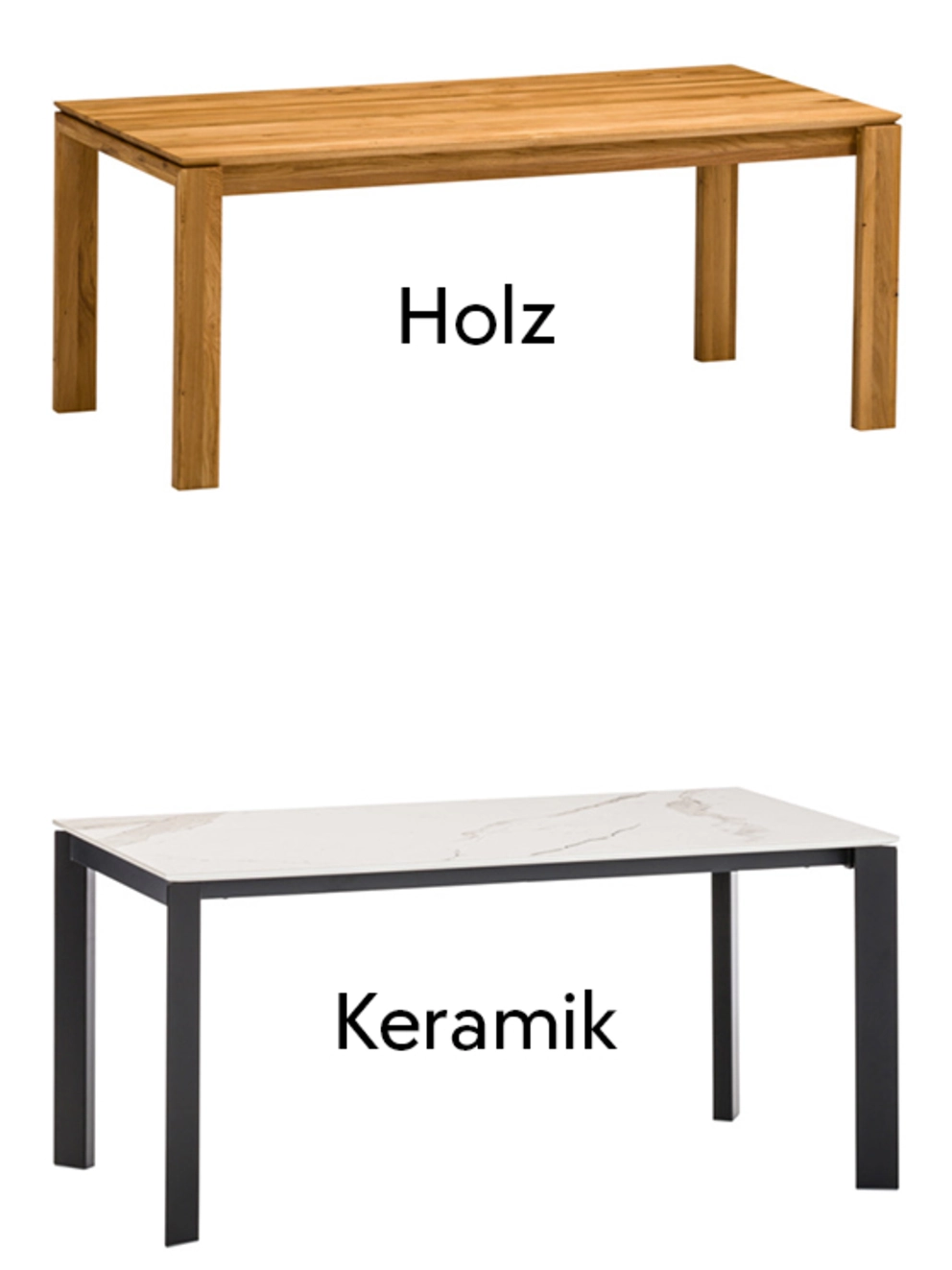 Unser Tipp: Möchtest du einen extravaganten, langlebigen Ausziehtisch kaufen, empfiehlt sich auch ein Exemplar mit Keramik-Tischplatte. Diese gilt als äusserst pflegeleicht sowie als schnitt-, stoss- und schlagbeständig. Aufgrund dieser Eigenschaften halten solche Tische immer häufiger in Familienhaushalten Einzug.