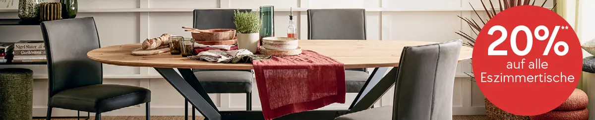 ** Gültig für mypfister Member und Neumember. 20% auf alle Gartenlounges, Sofas und Sessel, Esszimmertische, Boxspringbetten, jedes Geschirr sowie auf die Marke Sigor und auf die Bettwäsche von edy&liv. Gültig vom 3. bis 23.3.2026. Nicht kumulierbar mit anderen Vergünstigungen, nicht gültig für die Marken Biohort, BICO, Fatboy, Glatz, Lafuma, one, riposa, Schaffner, Talenti, TEAM 7, WILLISAU und Zumsteg sowie für Online-Only-Artikel, Mobitare, Services, Geschenkgutscheine und bereits erteilte Aufträge. Inkl. 2% mypfister Member Bonus.