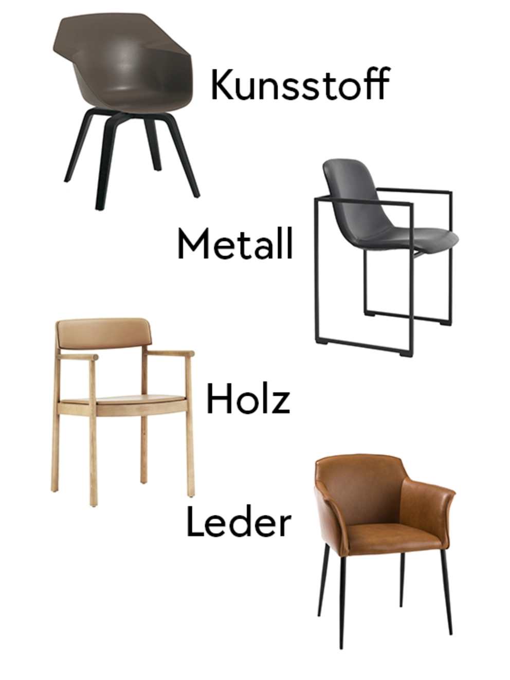 In welchen Looks und Materialien gibt es Armlehnstühle?