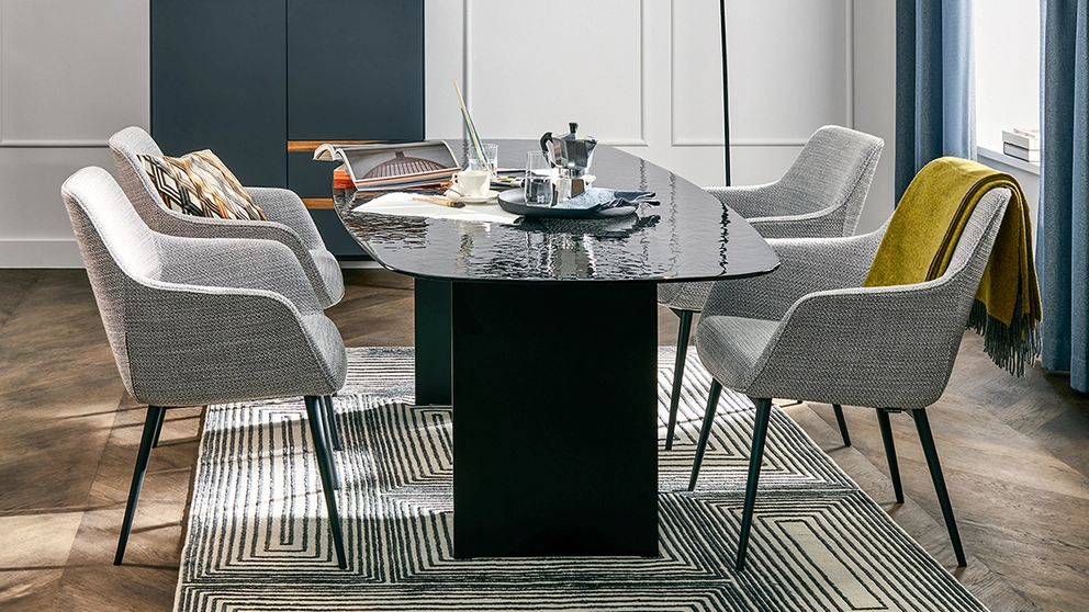 - Essbereich: Armlehnstühle um den Esstisch bieten Komfort während der Mahlzeiten und setzen ein stilvolles Statement. Wenn du Armlehnstühle um einen Tisch arrangierst, solltest du die Höhe der Armlehnen sowie der Tischplatte im Blick haben. Sind die Lehnen zu hoch oder der Tisch zu niedrig, lassen sich die Stühle möglicherweise nicht ganz darunter schieben.
