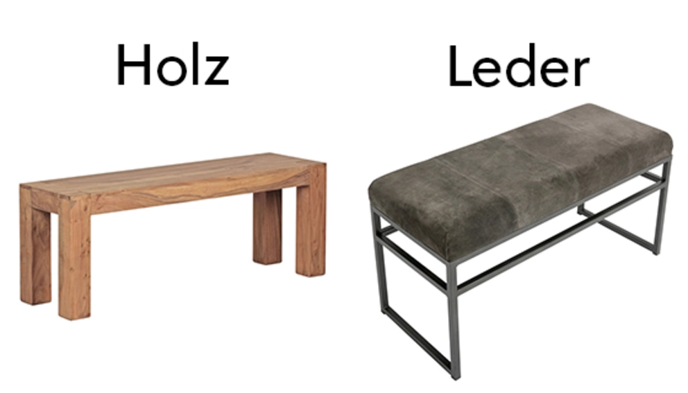- Gediegen und gemütlich nimmt sich eine Hockerbank mit Lehne aus Echtholz aus. Ein Sitzpolster aus Leder verleiht ihr einen edlen Touch, während ein Textilbezug behagliche Wärme ausstrahlt.