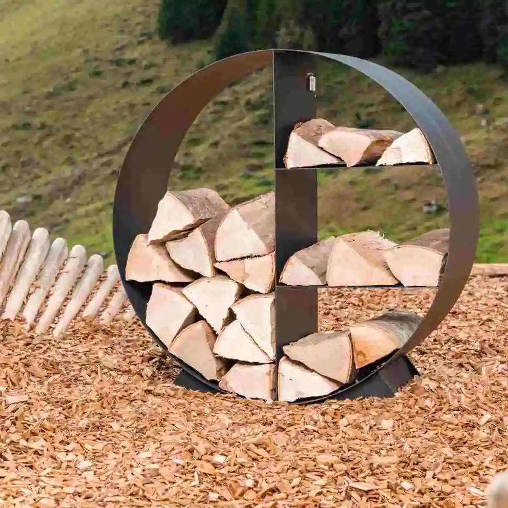 - Brennholzregal mit Akzent: Ein optisches Highlight im Wohnzimmer setzen Versionen, die über unterschiedlich gearbeitete Einsätze und Fächer verfügen. Die mit Rückwand oder ohne Rückwand, rund oder eckig verfügbaren Modellen machen deinen Holzstapel zum avantgardistischen Hingucker.