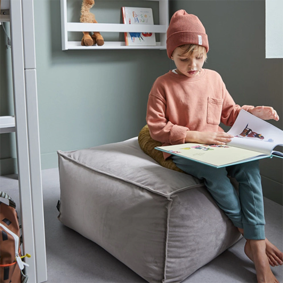 Sitzsack: Kinder lieben es, ihr Zimmer umzuräumen. Das Praktische an einem Kindersitzsack? Er lässt sich bequem von A nach B ziehen – je nachdem wo er gerade gebraucht wird. Die grosse Farbauswahl von dunkelgrau bis rot macht den Sitzsack im Kinderzimmer und auch im Jugendzimmer zum Star.