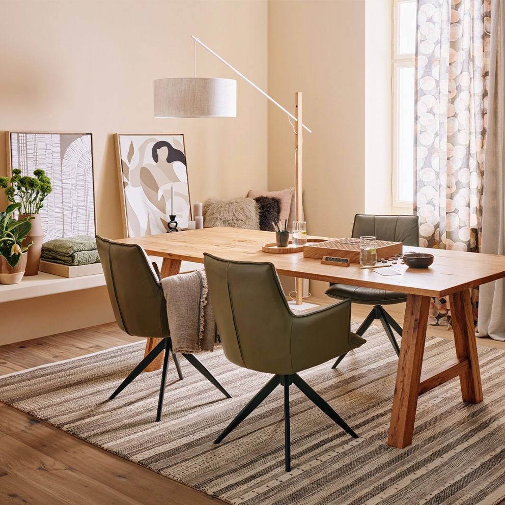 Grüne Blätter, frischer Grasduft – der Wohntrend Refreshing Greens holt den Frühling in dein Zuhause. Sanftes Seerosengrün und kühles Pastellgrün versprühen eine entspannte Frische, während Moosgrün Ruhe und Leichtigkeit ausstrahlt. Für den coolen Style-Mix sorgen Handmade-Geschirr und Korbgeflecht – ob als Lampen, Pflanzenübertöpfe oder Stühle, verleihen sie deinem Space den perfekten Natur-Touch. Gepaart mit warmen Erdtönen wie Kümmelbraun und Oliv-Beige, einem Hauch Eierlikör-Creme und warmem Weiss wird dein Home zur cozy Wohlfühl-Oase.
