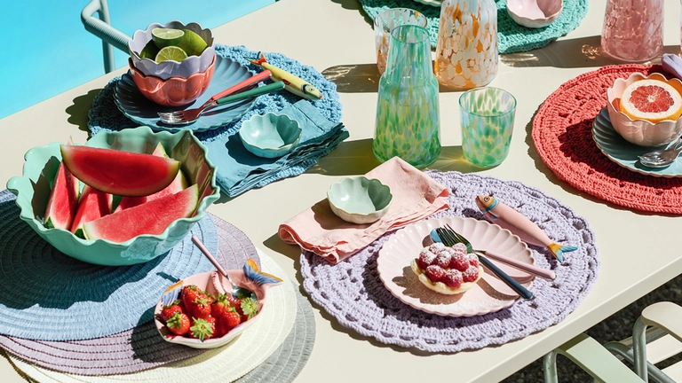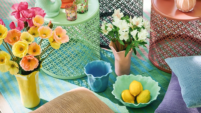 Colorful Home setzt auf Pastelltöne wie Mint, Lavendel und Pfirsich, gepaart mit kräftigen Akzenten in Koralle und Blau – für pure Dopamin-Vibes in deinen vier Wänden. Lieber natürlich? Refreshing Greens holt mit Seerosengrün, Pastellgrün und Moosgrün die Frische der Natur ins Haus. Kombiniert mit Handmade-Geschirr, Korbgeflecht und warmen Erdtönen entsteht ein gemütlicher Rückzugsort voller Leichtigkeit.