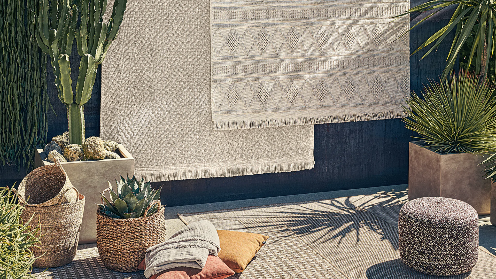 Die Vorteile von Outdoor-Teppichen liegen auf der Hand: Sie bringen im Nu gemütliches Flair in deinen Aussenbereich, verdecken verwitterte Böden und schützen nebenbei deine nackten Füsse vor aufgeheizten Terrassenfliesen. Bei Farbe und Form entscheidet der persönliche Geschmack.