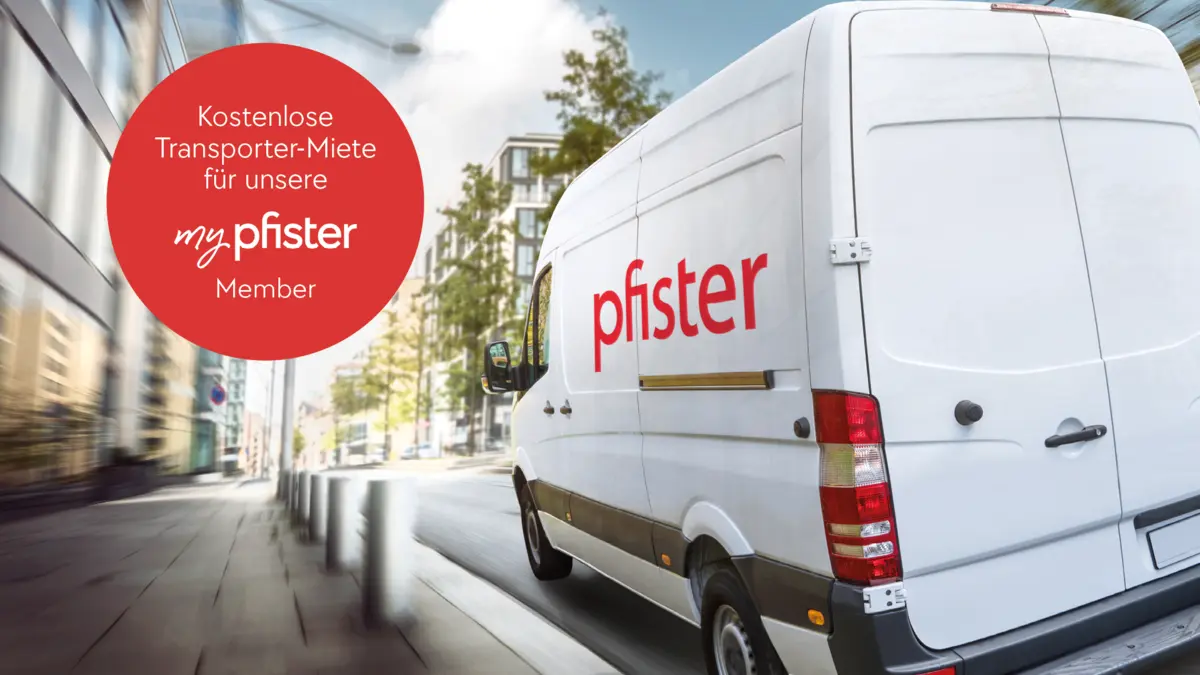 Ab sofort kannst du an mehreren pfister-Standorten einen Transporter mieten und deine Möbel von pfister gleich selbst nach Hause chauffieren.