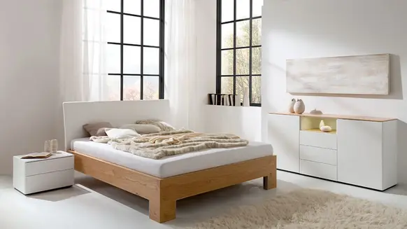 Betten, Einlegerahmen und Kleiderschränke aus Schweizer Holz bringen natürliche Schönheit ins Schlafzimmer und liefern handfeste Vorteile für deine Gesundheit: Holz aus verantwortungsvoller Schweizer Forstwirtschaft ist emissionsarm, wirkt feuchtigkeitsregulierend und sorgt für ein angenehmes Raumklima, ganz ohne lange Transportwege. Es unterstützt eine ruhige, gesunde Schlafumgebung und trägt dazu bei, dass du besser durchatmest und entspannter aufwachst. Mit Schweizer Holz schläfst du stilvoll – und natürlich gut.