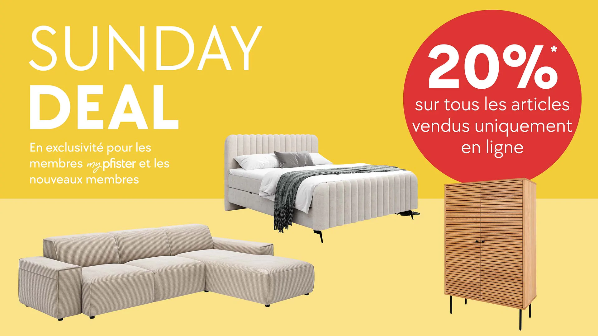Depuis 1882, pfister incarne la passion de l’ameublement et de la décoration. Une qualité indéfectible, une production durable, un conseil professionnel, un service de premier ordre et le plus grand choix d’ameublement et de décoration de Suisse... que voulez-vous de plus? Des succursales dont la présentation des produits inspire, une boutique en ligne avec plus de 100’000 articles? Ne cherchez plus, jetez un œil à la boutique pfister.ch. Nous attendons votre visite avec impatience.