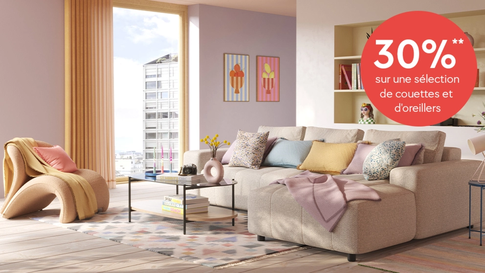 En route pour de meilleures nuits Jusqu’au 2.3.2026, offre-toi la chambre à coucher de tes rêves à prix promotionnel. Profite de remises attrayantes sur les lits et matelas, les duvets et oreillers douillets, une sélection de parures de lit et plus encore. Pour un relooking complet de ta chambre à coucher, pense également à nos armoires spacieuses et aux rideaux assortis avec une remise alléchante.