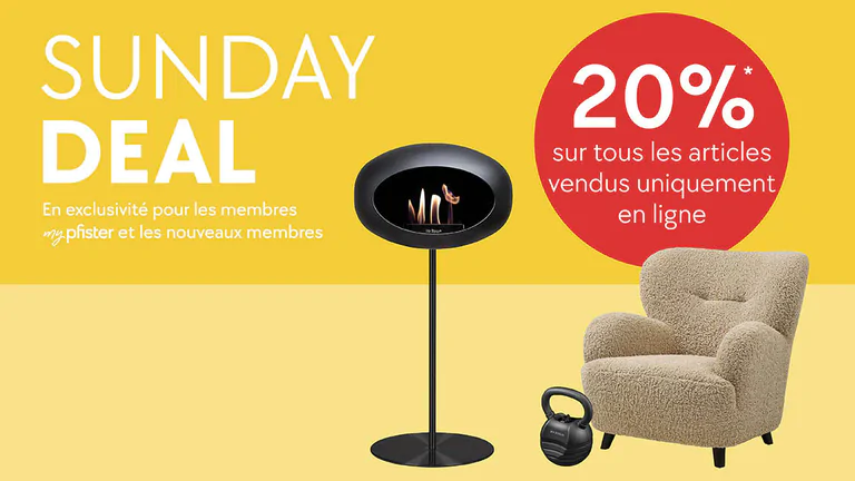 Promotion manquée? Ce n’est rien, les prochaines remises ne sauraient tarder. Inscrivez-vous dès aujourd’hui à la newsletter Pfister gratuite pour ne plus manquer aucune offre. Au fait: vous trouverez chaque jour des produits à prix-chocs sur notre page SALE.