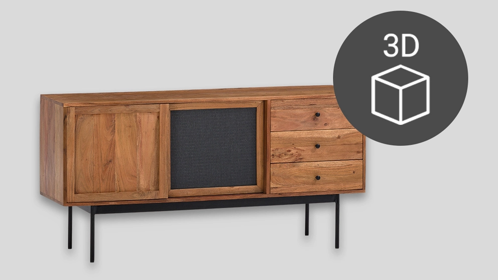 Notre fonction 3D vous permet d’observer vos meubles préférés sous tous les angles. Par conséquent, faites attention au symbole 3D dans notre boutique en ligne. Si l’icône (comme à gauche sur l’image) apparaît à côté d’un produit, un modèle 3D est disponible. Vous pouvez ensuite sélectionner la vue 3D et examiner le produit qui s’y trouve sous tous les angles à l’aide de la souris (ordinateur) ou d’un doigt (smartphone/iPad).