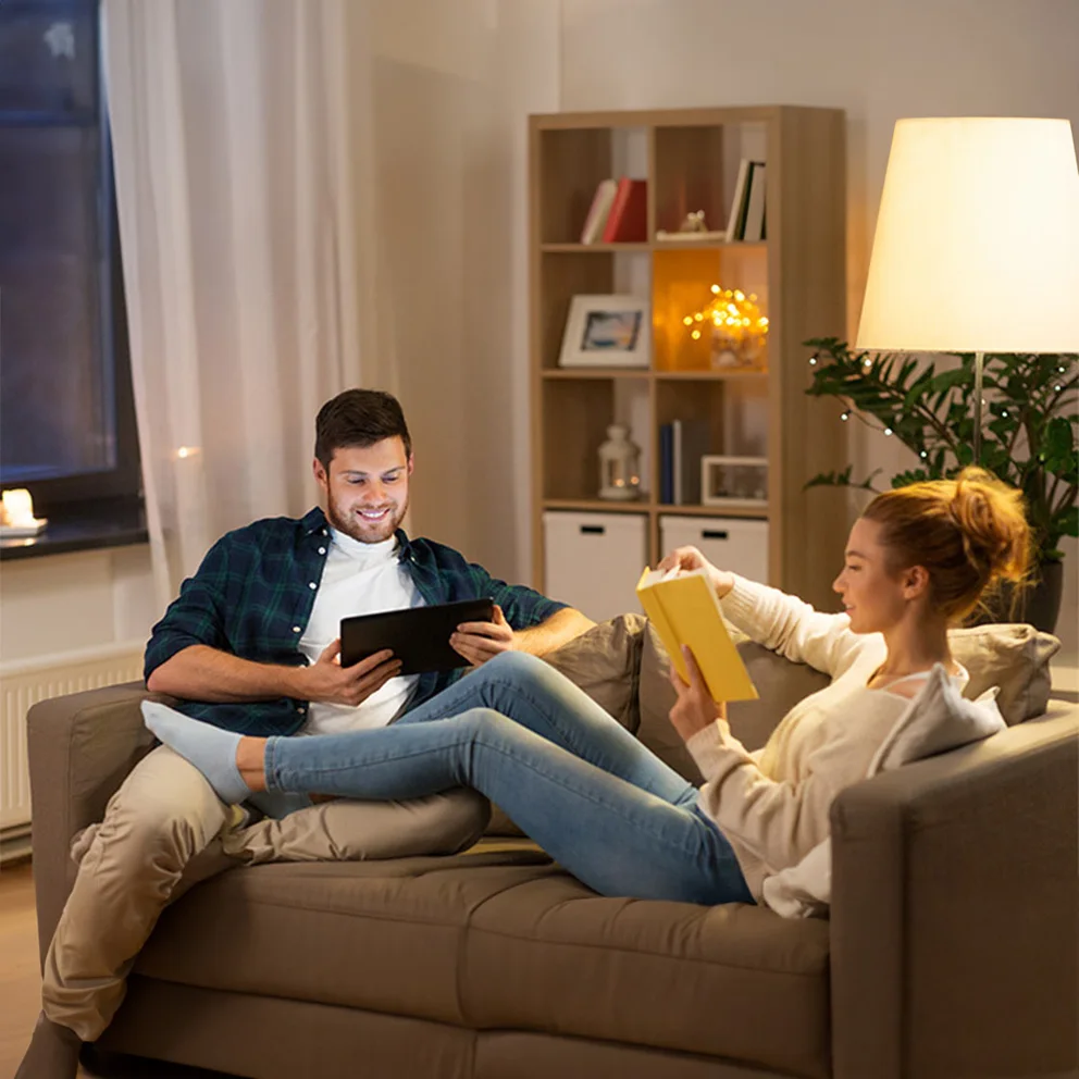 Avec les Smart Lights, les possibilités sont tout simplement infinies pour imaginer ton concept d’éclairage. Luminosité sur mesure et couleurs parfaites pour chaque ambiance, compose une ambiance personnalisée dans tes pièces avec les lampes d’un système Smart Home: en plus de l’éclairage, elles métamorphosent l’ambiance et l’atmosphère.