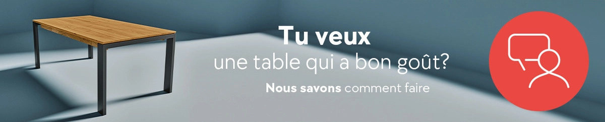 Astuce: as-tu déjà des chaises? La table doit y être assortie. Mesure la hauteur d’assise de tes chaises, ajoute 30 cm et voilà, tu obtiens la hauteur de table parfaite pour ton intérieur.