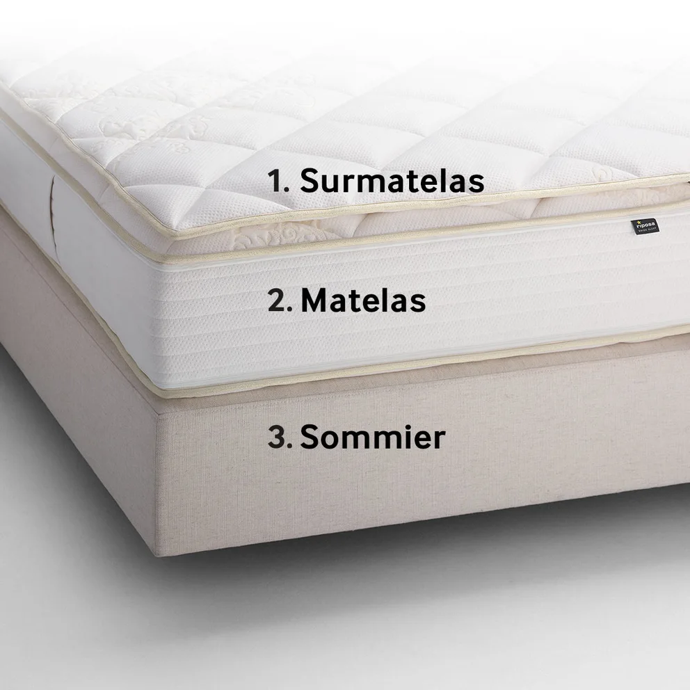 Fais attention à la qualité de la mousse du surmatelas et du revêtement des ressorts: la mousse de polyéther (mousse PU) réduit le confort et entraîne la formation de creux, car elle n'est pas assez élastique. La mousse à froid, la mousse viscoélastique ou la mousse en latex sont de meilleure qualité.
