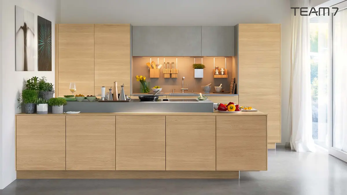 Votre cuisine en bois naturel TEAM 7 est planifiée individuellement et fabriquée sur commande. Cela signifie que chacun de vos futurs meubles de cuisine est conçu par un designer, planifié par des décorateurs d’intérieur professionnels selon vos idées, puis réalisé par des maîtres menuisiers. Car cela aussi, c’est de la durabilité: créer des produits ayant une longue espérance de vie fonctionnelle et esthétique. Comme alternative aux meubles jetables à courte durée de vie. Mais la promesse de qualité de TEAM 7 n’est pas seulement la qualité inconditionnelle des meubles. Les cuisines sont également équipées d’une technologie de pointe.