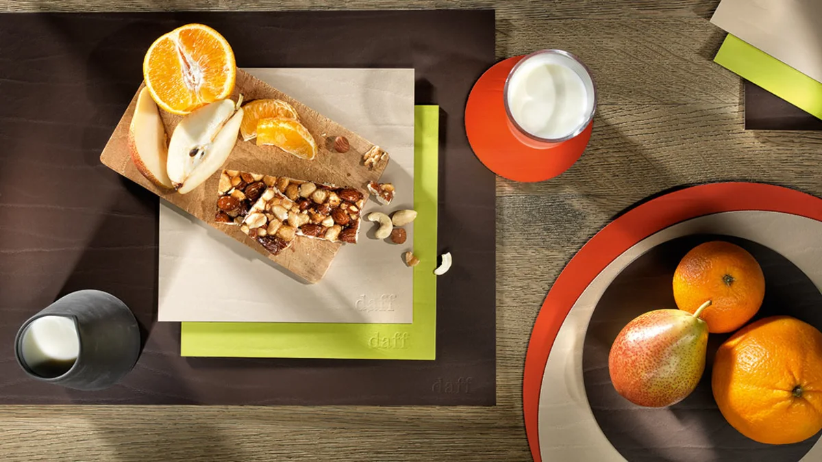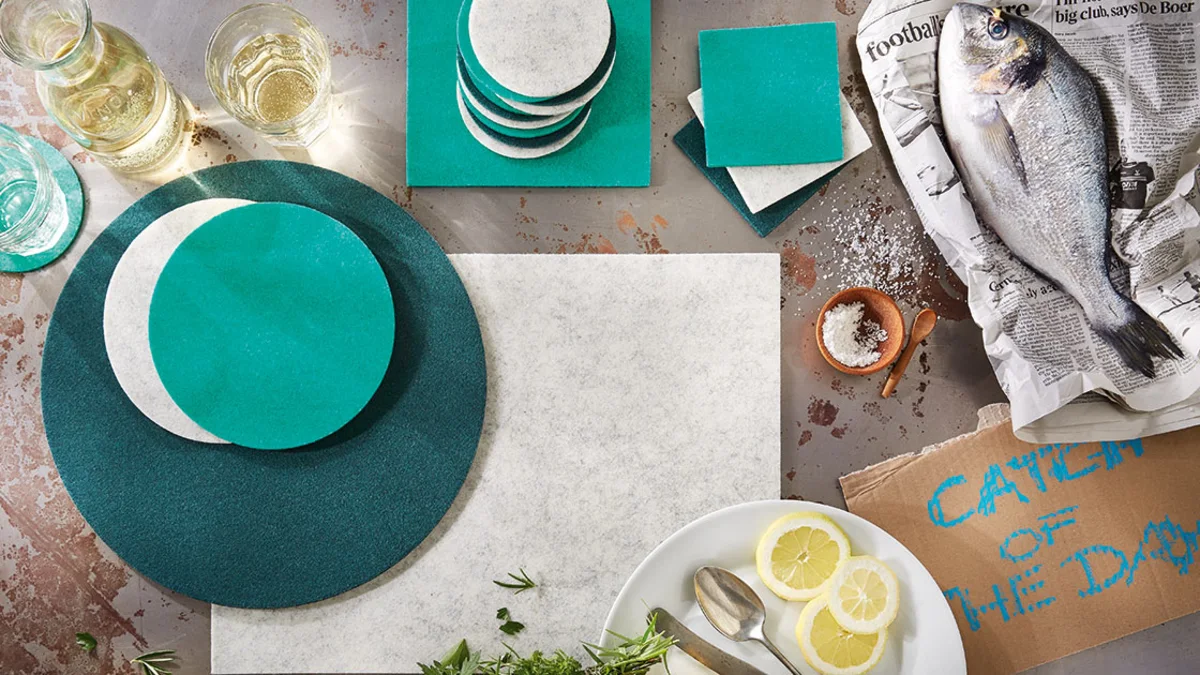 Qui dit DAFF, dit linge de table. Cette entreprise, fondée en 2001 par Carin Benter, a tout misé à ses débuts sur le feutre de laine mérinos, un matériau naturel proposé désormais en 40 couleurs. Ces dernières années, la durabilité et l’exploitation parcimonieuse des ressources sont devenues des préoccupations importantes, ayant incité DAFF à créer des produits à partir de matériaux recyclés et végans, comme FIBERIXX, un feutre végan en PET recyclé, LEATHERIXX, fait à partir de chutes de cuir recyclées, ou encore LAV, un autre matériau végan.