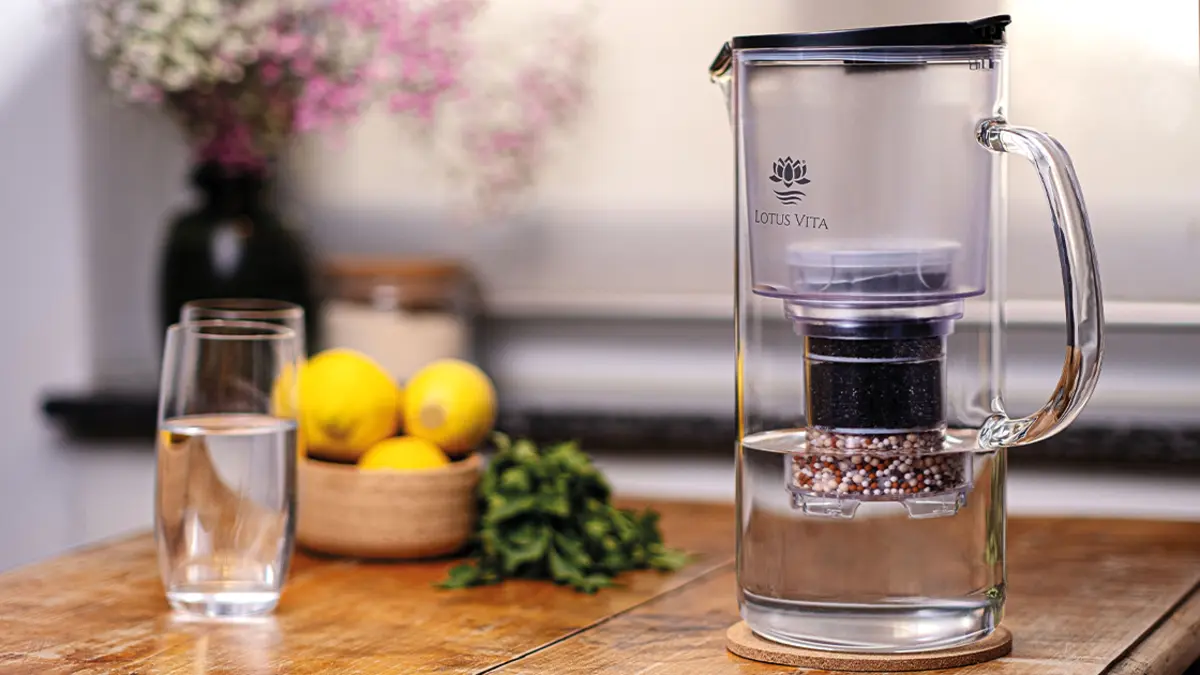 Les filtres à eau de LOTUS VITA retirent efficacement le calcaire de l’eau du robinet et la débarrassent de presque toutes les substances nocives. L’eau est ainsi débarrassée de 99 % des résidus de médicaments, des métaux lourds, des hormones, du mercure et du chlore, et de 99,9 % des pesticides. Grâce à la technologie de filtration PiVitalis® développée par des scientifiques et des thérapeutes, l’eau potable retrouve son goût naturel avec LOTUS VITA. Ces filtres à eau sont accrédités GIU et certifiés TÜV, tout comme leurs carafes filtrantes qui ne contiennent ni BPA ni BPS. Pour les grands besoins en eau potable, LOTUS VITA propose non seulement des carafes filtrantes, mais aussi des fontaines à eau avec filtre.