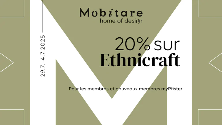 Pour un design d’intérieur exclusif, Mobitare est l’adresse par excellence en Suisse. L’assortiment comprend tant des marques d’ameublement de renom que des jeunes marques de design. Outre son vaste choix de meubles d’intérieur et de jardin, Mobitare séduit par son impressionnante variété de luminaires. Mobitare a été fondée en 1987 par pfister. Depuis, le nom Mobitare est synonyme de classiques intemporels du design et d’incontournables de l’intérieur actuels.