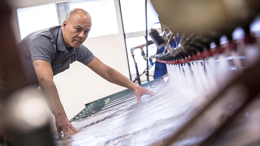 - Lors du lavage, des savons naturels et beaucoup d’eau sont utilisés. La durée de lavage et la température sont ajustées au cas par cas.