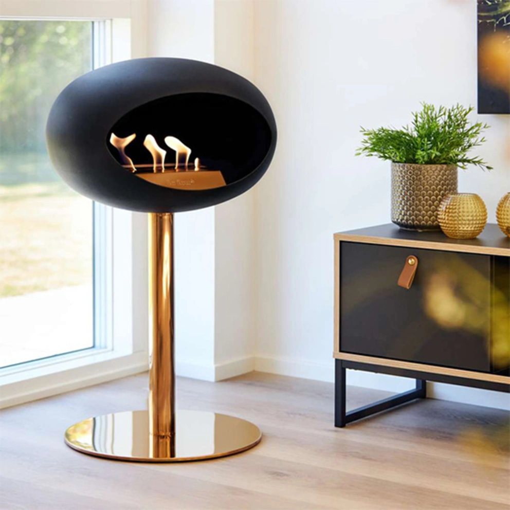 L’un des grands avantages des cheminées au bioéthanol est leur flexibilité. Comme elles ne nécessitent pas de conduits de fumée ou d’encadrement de cheminée, tu peux les placer dans de nombreux environnements, comme le séjour ou la salle à manger. Isolée comme élément de design élégant, montée au mur comme cheminée murale stylée ou sous forme de feu de table pour des soirées conviviales: les possibilités d’utilisation sont innombrables. Si tu souhaites créer un effet particulièrement original, opte pour une cheminée au bioéthanol qui se fixe au plafond, en suspension. Certains modèles peuvent également être utilisés à l’extérieur et feront du jardin et de la terrasse une oasis des plus chaleureuses.