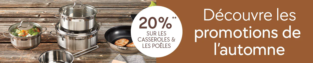 **Valable pour les membres et nouveaux membres mypfister. 20% sur tous les lits, matelas & sommier, tables de salle à manger, lampes de table ainsi que casseroles & poêles Valable du 7 au 20.10.2025. Non cumulable avec d’autres réductions, non valable pour les marques Artemide, BICO, HAY, Kartell, one, riposa, seetalswiss, stressless, TEAM 7 et WILLISAU, ni pour les articles vendus uniquement en ligne, Mobitare, les services, les bons d’achat cadeau et les commandes déjà passées. Bonus membre mypfister de 2% inclus.