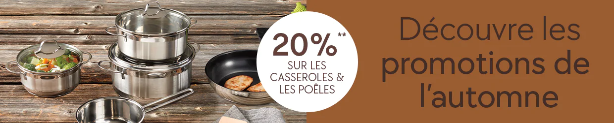 ​ **Valable pour les membres et nouveaux membres mypfister. 20% sur tous les lits, matelas & sommier, tables de salle à manger, lampes de table ainsi que casseroles & poêles Valable du 7 au 20.10.2025. Non cumulable avec d’autres réductions, non valable pour les marques Artemide, BICO, HAY, Kartell, one, riposa,​ seetalswiss, stressless, TEAM 7 et WILLISAU, ni pour les articles vendus uniquement en ligne, Mobitare, les services, les bons d’achat cadeau et les commandes déjà passées. Bonus membre mypfister de 2% inclus.