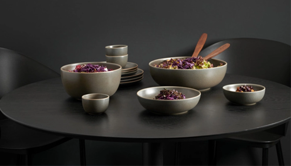 Intemporelles et élégantes, les coupes classiques en porcelaine blanche sont parfaites pour les tables de fête, tandis que leur pendant en céramique, généralement d’aspect plus maniable, conviennent bien à l’usage quotidien. Elles sont proposées dans une grande variété de couleurs et de motifs – de la coupe simple en céramique blanche aux modèles à motifs géométriques rétro en passant par des exemplaires unis verts, bleus ou jaunes. Les coupes noires s’intègrent sans problème à une table chic et moderne de style «black and white» par exemple; un style très tendance. Quant aux coupes à dessert en verre LEONARDO ou HERGISWIL, leur finesse très sobre permet de multiples combinaisons. Pour les biscuits, noix et autres aliments comparables, pourquoi ne pas les présenter dans un contenant plus traditionnel, comme des coupelles en bois? Leurs équivalents en métal se prêtent, quant à eux, davantage à accueillir des fruits ou à servir de corbeilles de table.