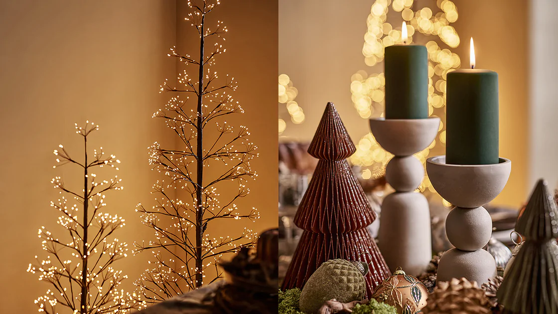 Alors que la neige tombe dehors et que le froid dessine des fleurs de glace sur les vitres, des éclairages de Noël harmonieux créent une atmosphère de bien-être unique chez toi. En plus des traditionnelles bougies de Noël et des bougeoirs assortis, ainsi que des lanternes de Noël de diverses formes et couleurs, tu trouveras bien sûr chez nous des sources de lumière artificielle comme d’élégantes bougies à LED, des figurines décoratives’ lumineuses et des guirlandes lumineuses pour l’intérieur et l’extérieur. De quoi faire briller ta maison de mille feux.
