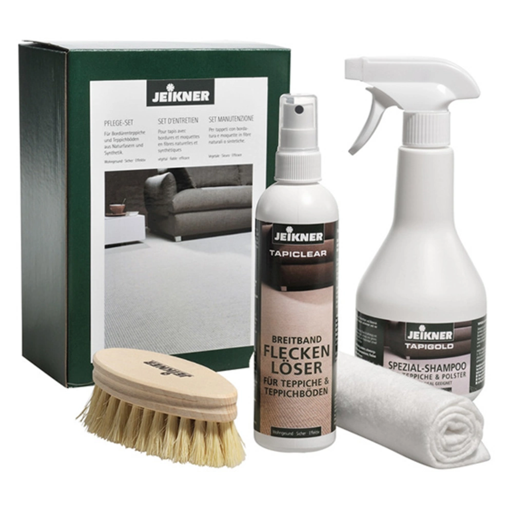 Tu te précipites en direction du téléphone qui sonne, ta tasse de café à la main, mais – oups! – l’inévitable se produit: des éclaboussures de la boisson chaude marron ont atterri sur le tapis du séjour. Si tu te demandes alors «Comment éliminer les taches de café de mon tapis?», un nettoyeur de tapis spécial avec brosse est la réponse à ta question. Utilise p. ex. un détachant à large spectre Jeikner et laisse-le agir un moment sur la tache. Les salissures seront éliminées du tissu et sèchent sous forme de poudre cristalline facile à aspirer. Les éventuels résidus peuvent être éliminés délicatement du tapis à l’aide d’une brosse souple. Il en va de même pour d’innombrables autres types de taches, notamment le thé, la suie, l’urine ou le jus de fruit. Ton tapis te semble-t-il sale et grisâtre et pourrait-il faire avec une cure de jouvence? Dans ce cas, fais appel à un shampoing pour tapis.