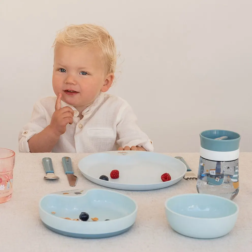 Un équipement de base en vaisselle et en couverts permet à ton bambin d’être bien équipé pour chaque repas à la table familiale: