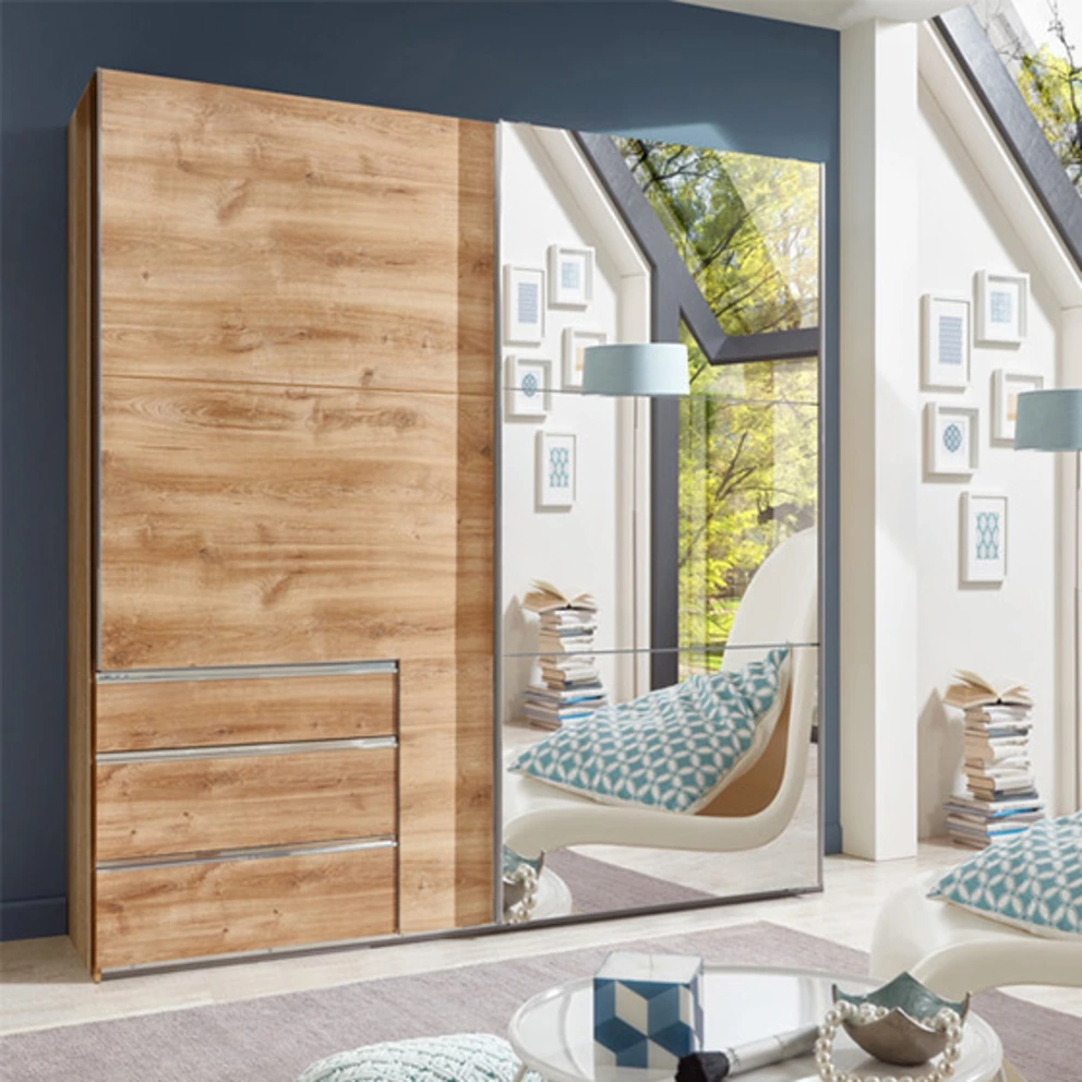- L’armoire à portes coulissantes avec miroir procure deux avantages immédiats: tu peux vérifier ta tenue dans le miroir et ce dernier agrandit la pièce.