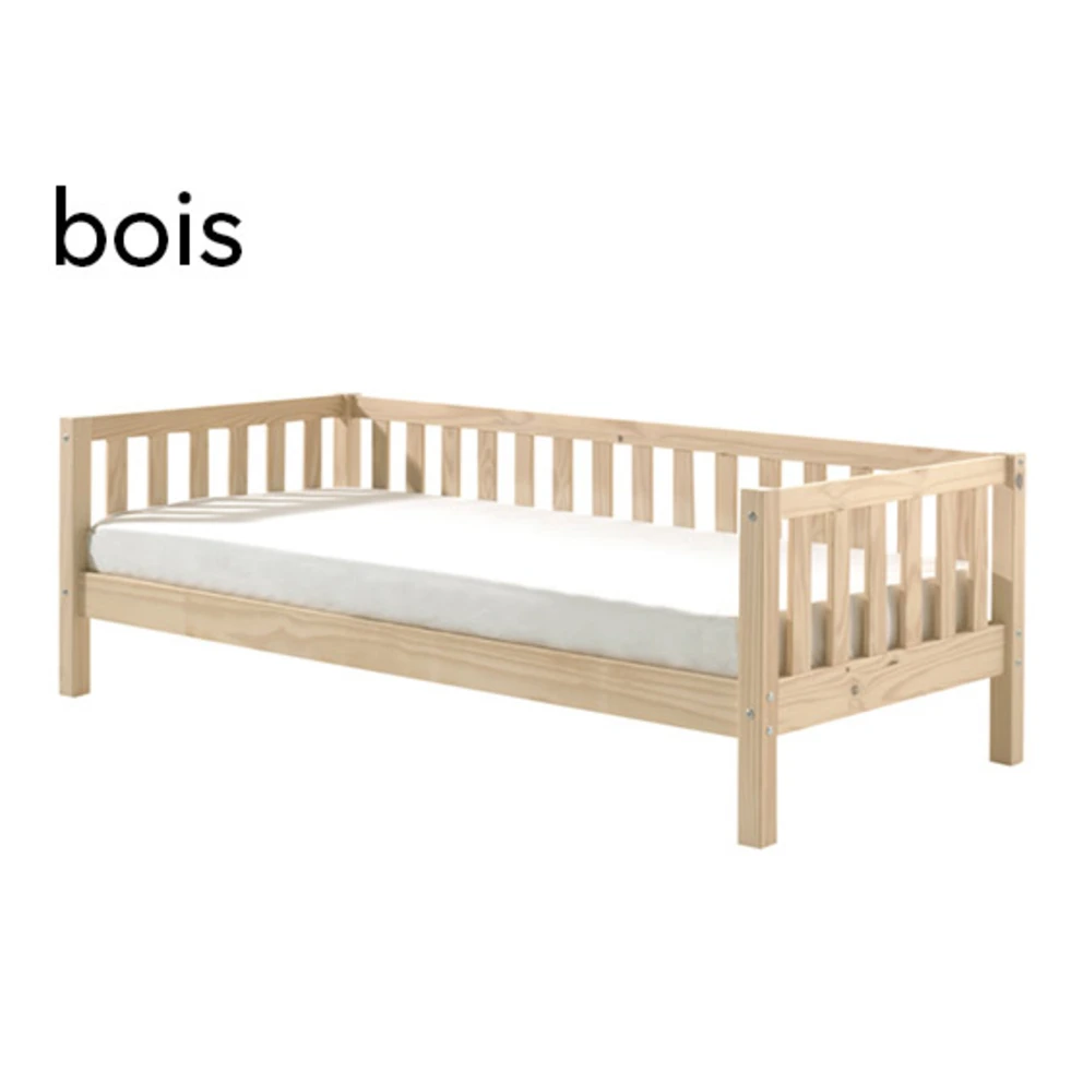 - Lits à barreaux: le lit à barreaux est un grand classique des lits pour bébé. Il se distingue par des barreaux montés sur le côté ou sur tout le pourtour du lit. Il empêche ton bébé de tomber du lit pendant qu’il dort ou est allongé sur le lit. Il garantit également une bonne circulation de l’air afin que ton enfant puisse dormir dans la meilleure atmosphère possible. Tu peux poser ton bébé dans un lit pour bébé équipé d’une barrière de sécurité à tout moment pour vaquer à d’autres occupations en toute sécurité. Sur certains modèles, tu peux retirer les barreaux. Ce type de lit pour bébé évolutif peut servir plus tard de lit d’enfant.