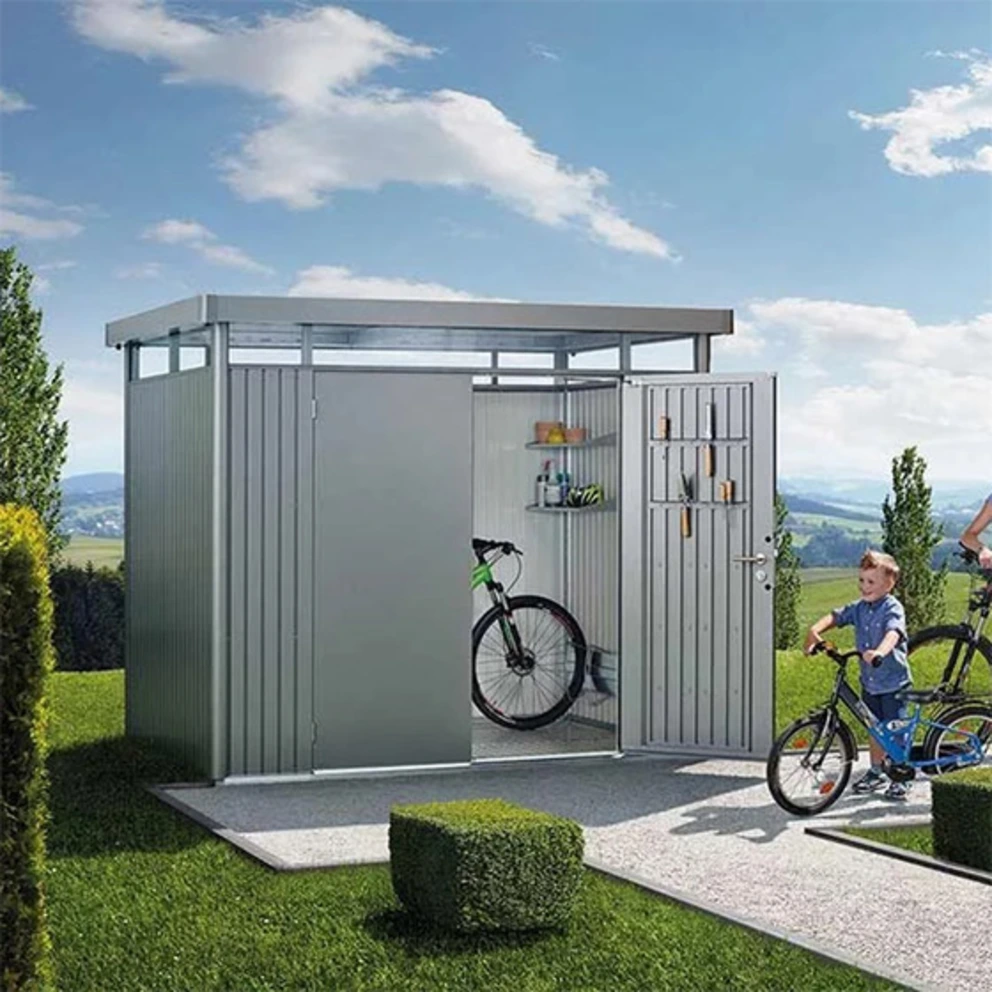 - Cabane de jardin en métal: une cabane de jardin en métal, par exemple un abri de jardin Biohort, est solide et stable. Elle est idéale pour ranger les appareils et outils de jardinage. En raison de leur résistance, ces cabanes de jardin sont considérées comme particulièrement sûres contre les effractions. L’entretien est minime: les saletés s’enlèvent facilement avec de l’eau. Tu peux aussi simplement arroser ton abri de jardin avec un tuyau d’arrosage pour éliminer la poussière, le pollen et la terre.