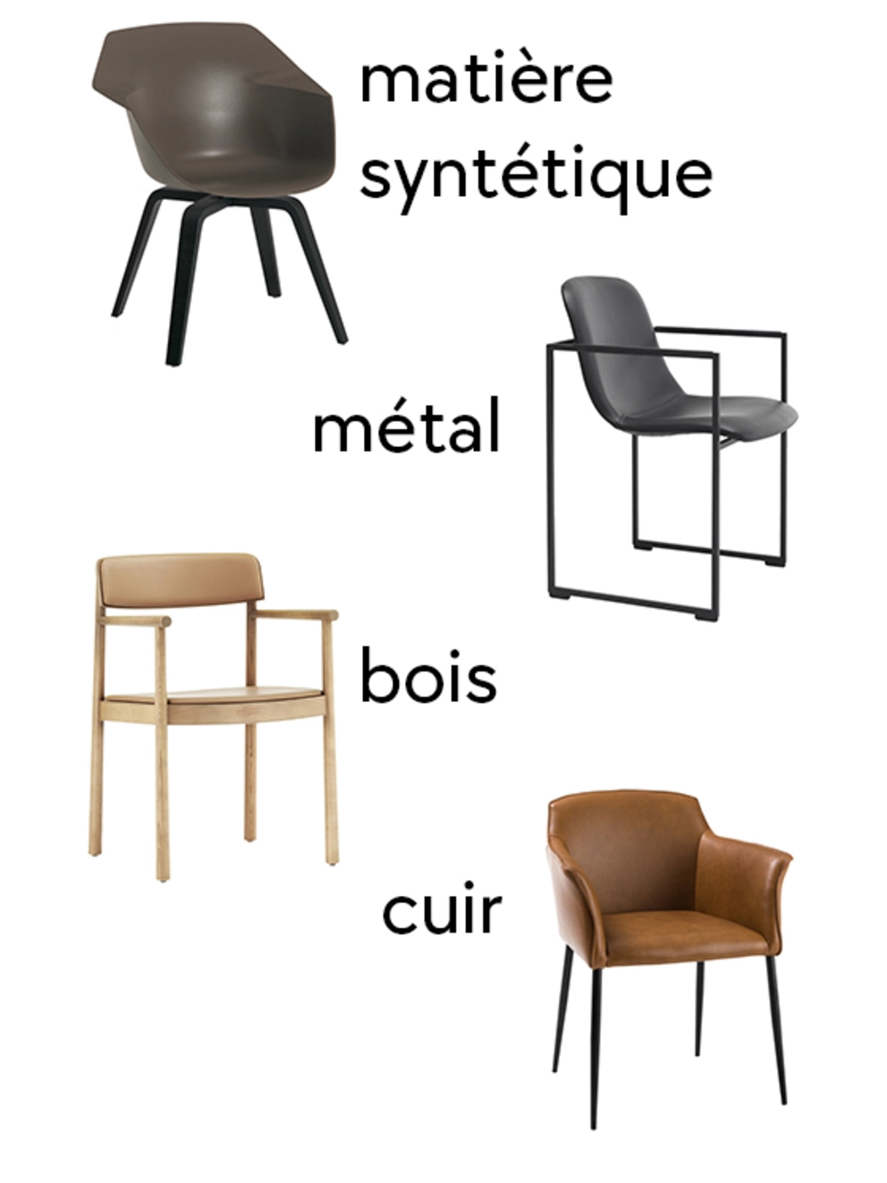 - Salle à manger: les chaises à accoudoirs autour de la table rendent les repas plus confortables et imposent leur style avec élégance. Avant d’installer des chaises à accoudoirs autour d’une table, tiens bien compte de la hauteur des accoudoirs et du plateau de table. Si les accoudoirs sont trop hauts ou la table trop basse, tu risques de ne pas pouvoir glisser les chaises entièrement sous le plateau.